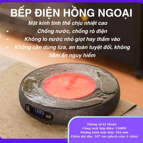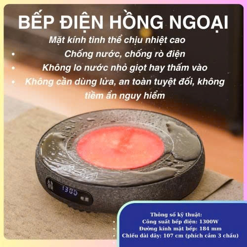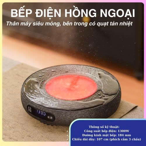 Bếp điện gốm siêu mỏng công suất 1300W, đun nhanh, an toàn và tiết kiệm điện.