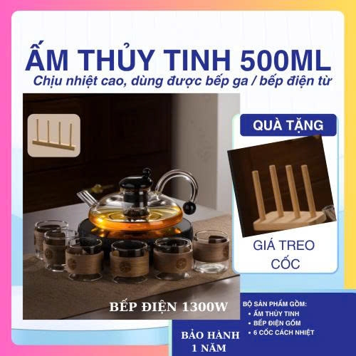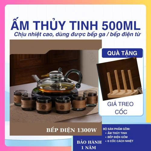 🫖 ẤM TRÀ GỐM ĐIỆN CAO CẤP – BỘ ẤM THỦY TINH CHỊU NHIỆT HÌNH ĐUÔI CHUỘT