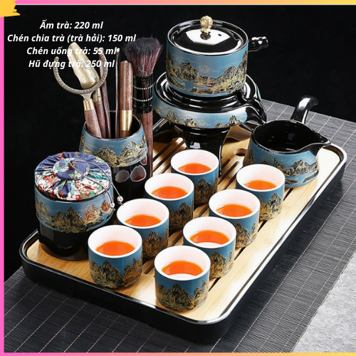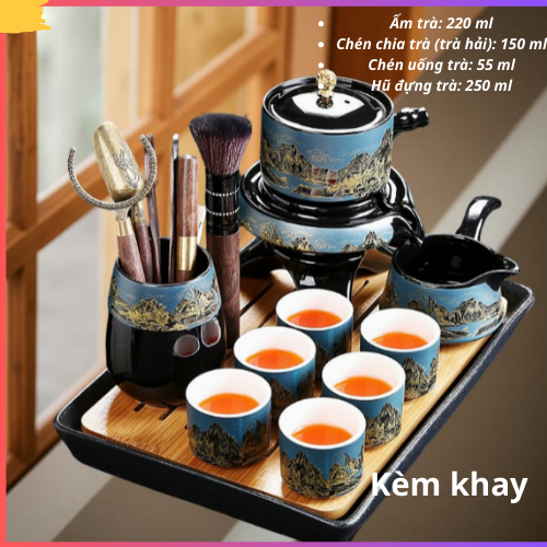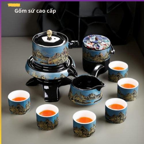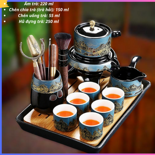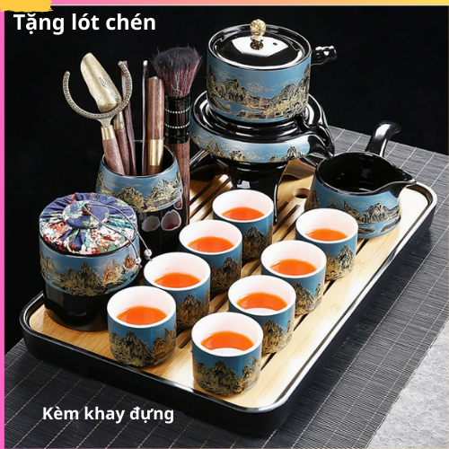 Bộ Ấm Chén Pha Trà Tự Động Cao Cấp Xoay Rót Thông Minh, Phòng Khách,Set Trà Đạo