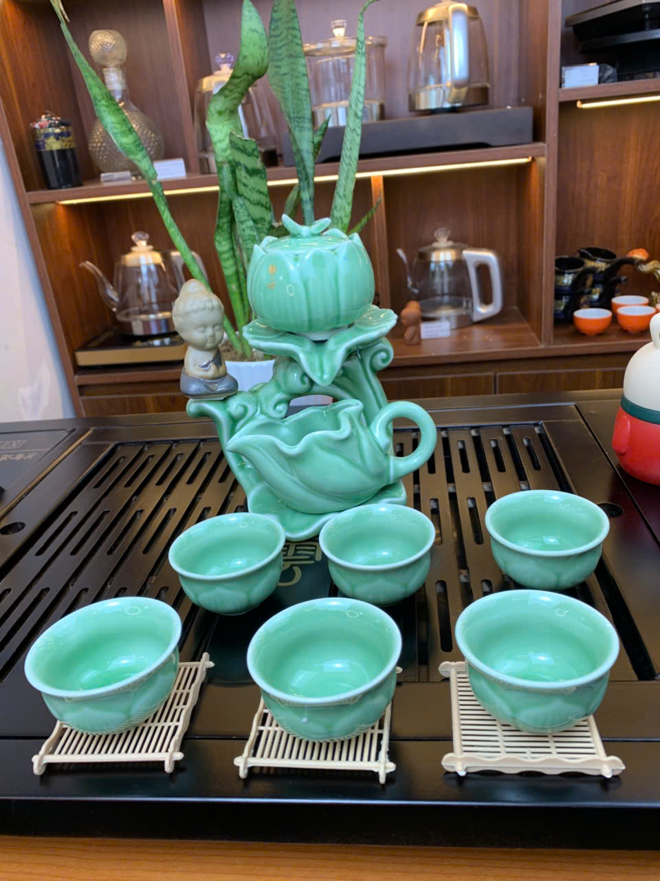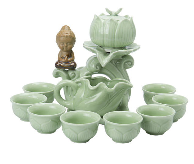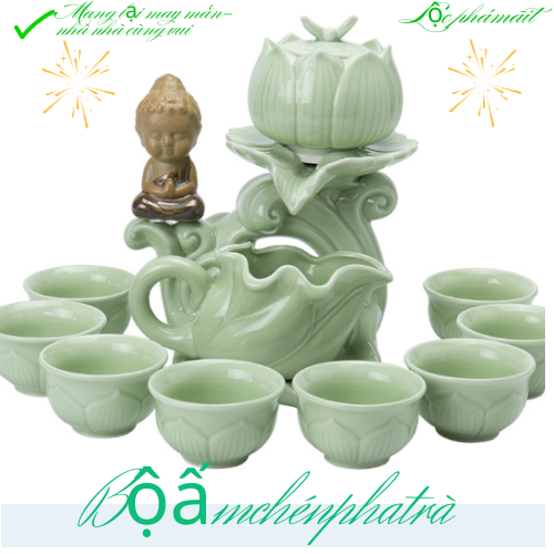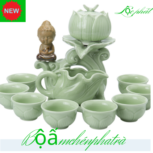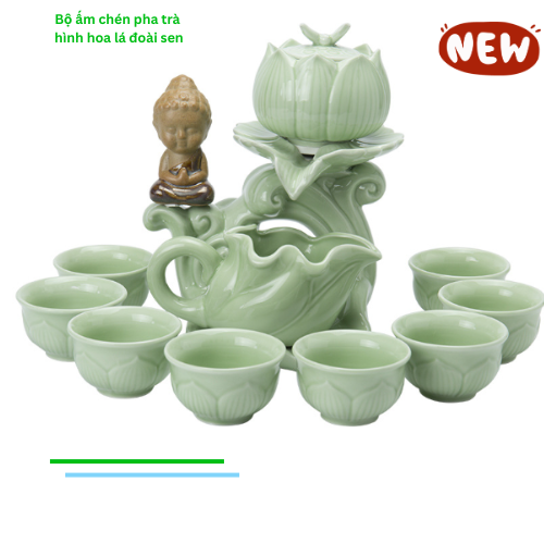 Bộ Ấm Chén Pha Trà Xoay Hình Đoài Sen Lá Chất Liệu Gốm Sứ Cao Cấp