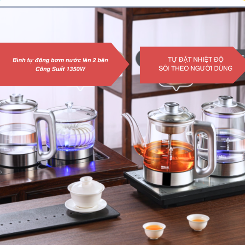 Bộ Đun Nước Điện Tự Động Pha Trà Cấp Nước 2 Bên Ấm Và Nồi Tại Bàn