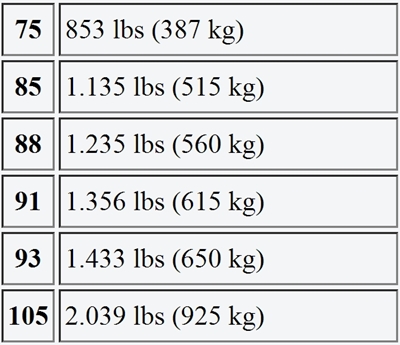 *Số 82 - Tải trọng lốp xe chịu được: Thông thường vị trí này có số từ 75 tới 105 tương đương với tải trọng từ 380 tới 925 kg.